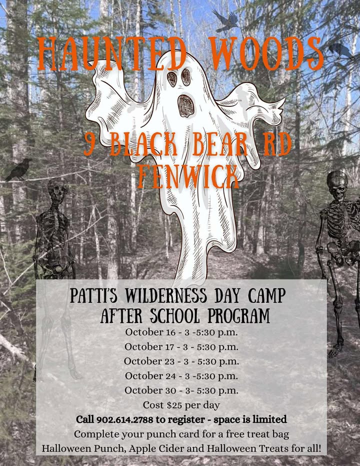 Patti’s Wilderness Day Camp is offering a Haunted Woods after school program in Fenwick, N.S. during the last two weeks of October.
